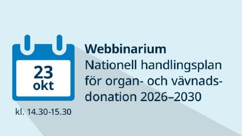 Handlingsplanen fastställer den gemensamma inriktningen för de kommande fem åren och omfattar 35 åtgärder som ska genomföras på nationell, regional och lokal nivå – med målet att möjliggöra fler transplantationer. Webbinariet är därför ett viktigt avstamp för implementeringen.