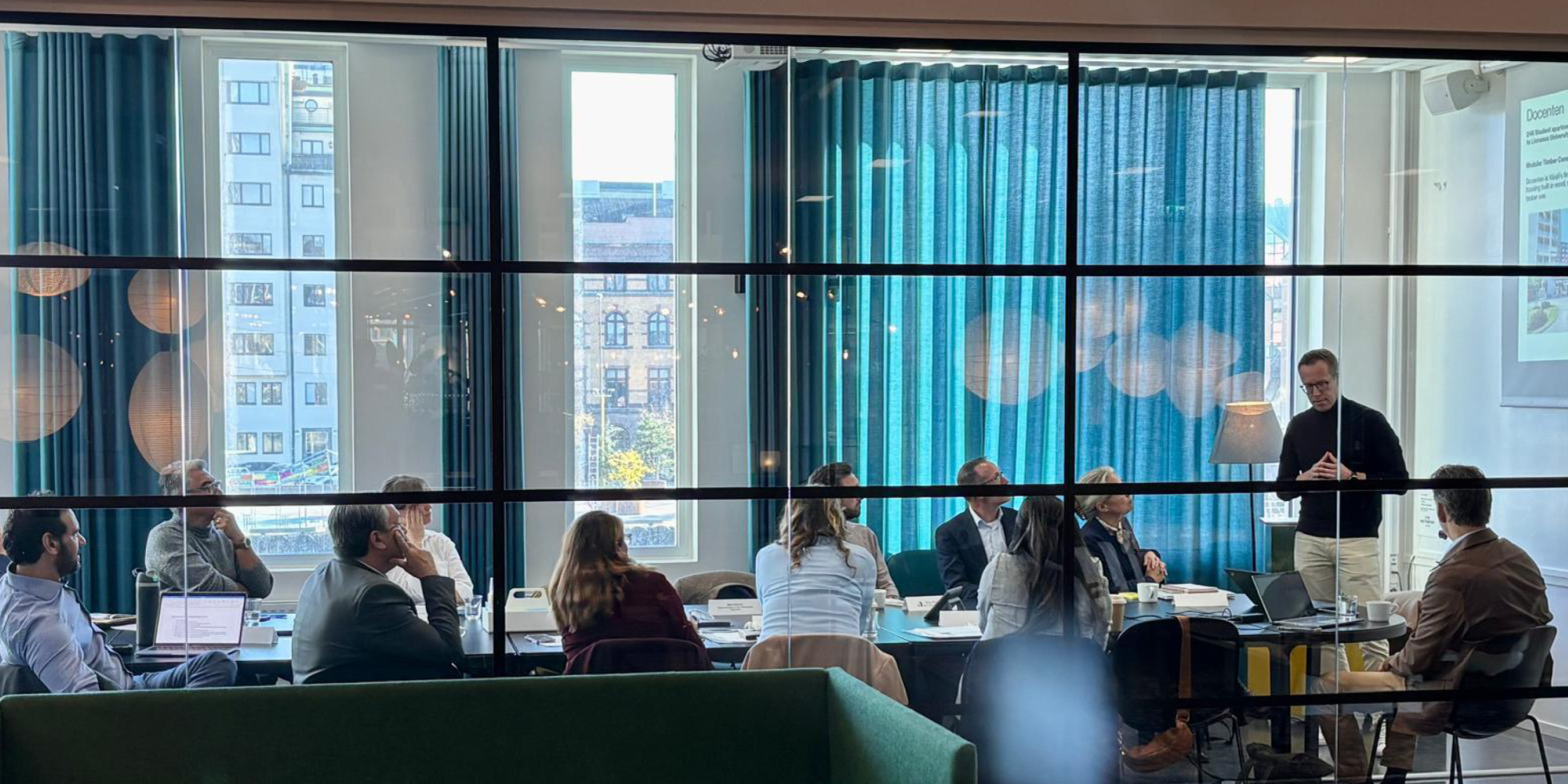 I slutet av oktober hade vår affärsutvecklare Björn Eliasson den stora glädjen att prata om Växjö och träbyggnation för en samling av Kaliforniens ledande politiker inom bostadsområdet i samband med deras sverigebesök. En engagerad skara politiker med mycket dialog och många frågor. Andreas Berge från Södra Building Systems medverkade med en uppskattad presentation av deras industriella träbyggnadsproduktion.