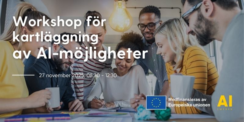 Tillsammans med AI Sweden och Linnéuniversitetet bjuder vi in till en workshop för kartläggning av AI-möjligheter – ett tillfälle som vanligtvis är reserverat för AI Swedens partner, men som nu öppnas upp för fler organisationer.