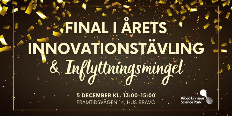 Växjö Linnaeus Science Park bjuder in till en inspirerande eftermiddag med prisutdelning i Innovationstävlingen 2025 och ett festligt inflyttningsmingel i våra nya lokaler.