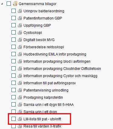 Det finns nu en ny bilaga att bifoga kallelser inom specialistvården: ”LM-lista till pat – utskrift”.