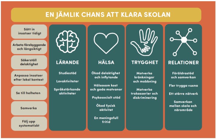 År 2022 gick nio civilsamhällesorganisationer samman för att ta fram ett gemensamt kunskapsunderlag som belyser skolans utmaningar, aktuell forskning och möjliga insatser: En jämlik chans att klara skolan - Rädda Barnen. Underlaget, framtaget av Idrott utan Gränser, Rädda Barnen, Stiftelsen Friends och Stiftelsen Läxhjälpen, presenterar en modell som stöd för aktörer som vill arbeta strukturerat och tillsammans för att fler barn ska klara skolan.